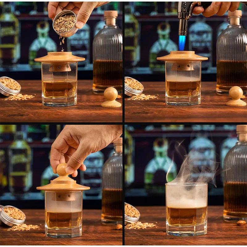 Premium Whiskey Cocktail Smoker Kit With 6 Wood Chips & Metal Filters,fast Oxidation Aerator Bar Tool Set For Home Luxury Gifts